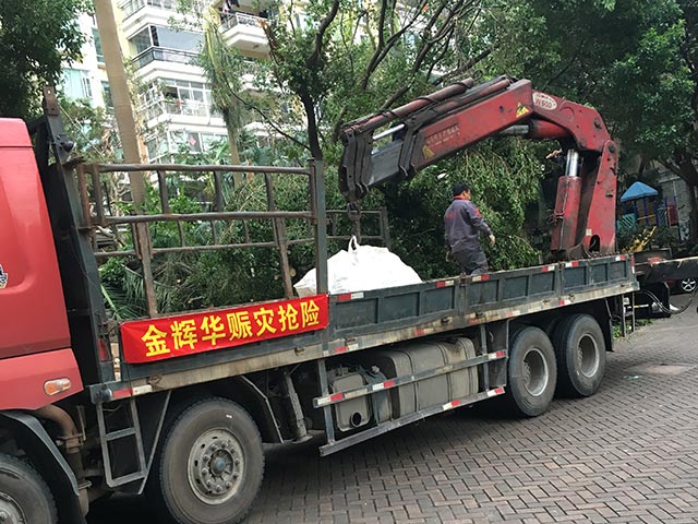 ――記金輝華集團珠海公司2017年8月23日中午12點50分,第13號臺風“天鴿”正面襲擊珠海市,大批樹木被攔腰折斷或連根拔起,造成大部分主干道堵塞,嚴重影響當?shù)鼐用窆ぷ骱蜕睢!疤鞛臒o情人有情”,我集團珠海公司在獲悉災情后,迅速行動,組織人員和車輛,全力以赴針對突出的受阻道路進行清理工作。在安平路、桃園路、海虹路、東風路等路段,隨處可見殘樹斷枝錯亂橫陳,珠海公司員工與當?shù)鼐用褚黄鹎鍜呃嵋茦?/p>