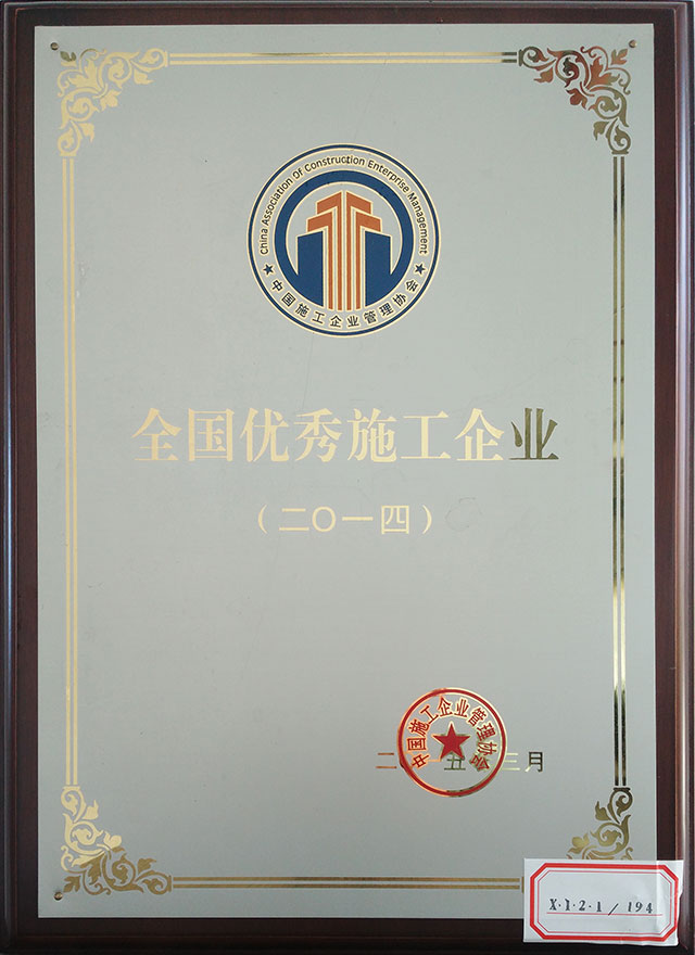 熱烈慶祝我公司榮獲全國(guó)優(yōu)秀施工企業(yè)