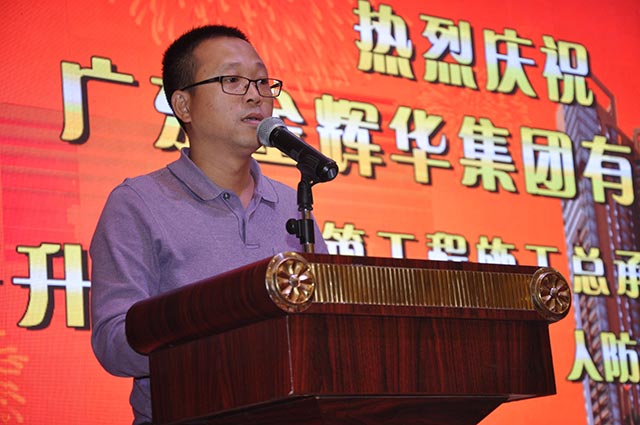 2014年11月22日,廣東金輝華集團有限公司召開我司晉升房屋建筑工程施工總承包特級和建筑行業(建筑工程、人防工程)甲級資質的慶祝會。為了特級,我們一起奮戰了六年,六年的經歷歷歷在目!六年的艱辛回味甘甜!六年的耕種全面豐收!感謝各界部門領導的鼎力相助和金輝華全體員工的不懈努力,祝愿金輝華的明天更加輝煌。 集團總裁李甫先生作晚會開幕詞集團董事局主席周珉興先生作重要講話集團董事局主席周珉興先生帶領各集