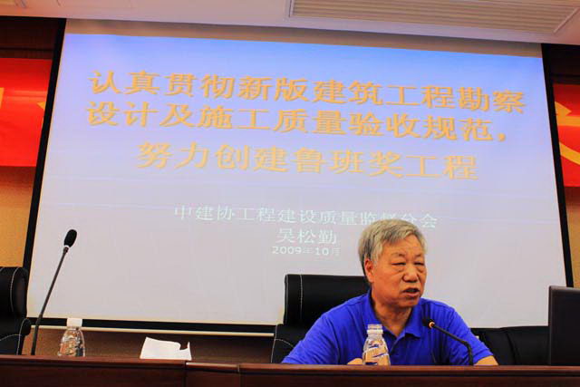 10月25日上午,中國建筑業協會工程質量監督分會會長吳松勤到我司指導“魯班獎工程”創建工作,為我司工程項目部60多名員工進行了一場精彩的學術演講會。圖為:中國建筑業協會工程質量監督分會會長吳松勤演講會上,吳會長給我司員工解讀了新的《建筑工程設計系列規范》和《建筑工程施工質量驗收系列規范》(下簡稱《質量驗收規范》)。指出《質量驗收規范》對于施工企業發揮自身優勢,創建優質工程,留有很大的空間。《質量驗