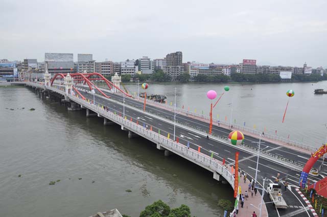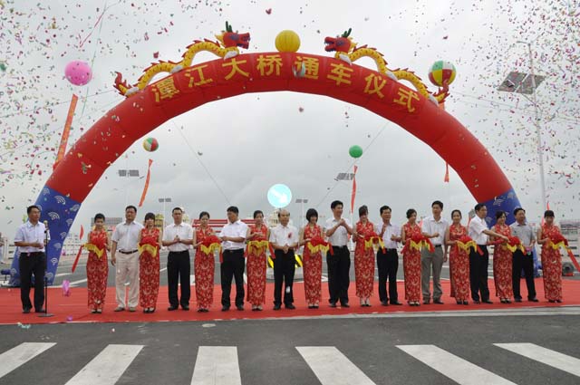 2011年6月22日上午,開平市委、市政府舉辦隆重而簡單的儀式,慶祝潭江大橋落成通車。市領(lǐng)導(dǎo)馮立堅、黃耀雄、吳平超、薛衛(wèi)東、趙會強、張星杰、謝超武、陳偉成、梁和平,以及我集團公司項目領(lǐng)導(dǎo)小組成員部門單位的領(lǐng)導(dǎo),參建項目的設(shè)計、監(jiān)理、施工、監(jiān)測等單位代表共50多人參加了儀式。