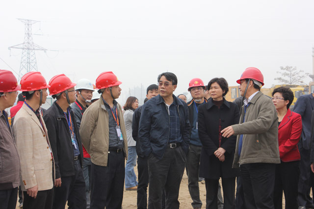 2月22日早上,江門市委書記劉海、市長龐國梅、副市長鐘軍、住建局局長馬克烈等一行人到我集團公司承建的江門市豐樂路北延線工程考察。