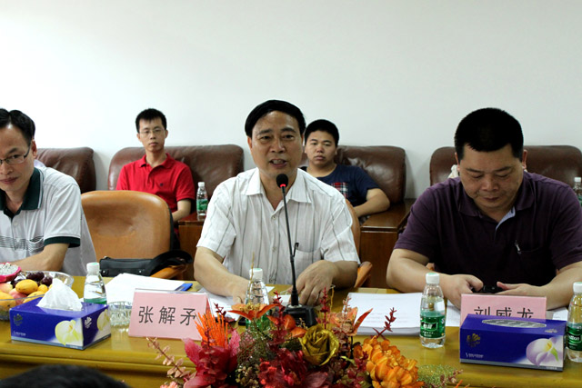 圖為我集團黨委書記張解矛在介紹我集團黨委的情況