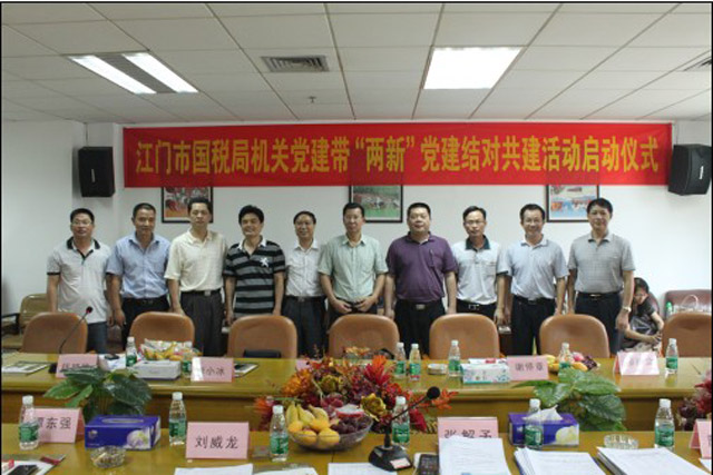啟動儀式上,首先江門市國稅局的人員參觀了我集團的黨工青婦活動室、榮譽室。座談會上,雙方互相介紹了各自出席此次儀式的人員,后共建雙方的黨委分別對各自的黨委概況進行了介紹,使共建雙方更清楚地了解對方。儀式上,江門市國稅局機黨委向我集團黨委贈送了有關黨建工作的書籍,如十七大會議精神理解等。為切實實現共建目標,雙方根據各自黨支部的實際情況實現了江門市國稅局機關黨委各支部與我集團黨委各支部的共建結對,共同明確了通過結對共建活動目標:爭創全省乃至全國的‘兩新”組織黨建工作示范點。開平市委組織部劉威龍副部長在啟動儀式上,對“關于開展機關黨建帶‘兩新’黨建結對共建活動”的文件精神進行了解釋,并表示這是當前黨建的重要工作。長沙街道辦事處黨工委委員陳國強主任在啟動儀式上表示:將盡全力支持江門國稅局的“機關黨建帶‘兩新’黨建”的結對共建活動。