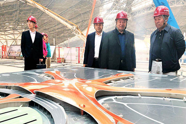 10月17日上午,集團(tuán)董事長(zhǎng)李甫,副董事長(zhǎng)周錫峰一行赴北京大興國(guó)際機(jī)場(chǎng)參與專(zhuān)題調(diào)研。中施企協(xié)會(huì)長(zhǎng)曹玉書(shū),中施企協(xié)副會(huì)長(zhǎng)、北京市建筑業(yè)聯(lián)合會(huì)會(huì)長(zhǎng)欒德成,中施企協(xié)副會(huì)長(zhǎng)兼秘書(shū)長(zhǎng)尚潤(rùn)濤,廣州市建筑業(yè)聯(lián)合會(huì)原會(huì)長(zhǎng)邵云平、現(xiàn)任會(huì)長(zhǎng)楊家峰及副會(huì)長(zhǎng)等參加調(diào)研。北京城建集團(tuán)副總經(jīng)理兼總工程師張晉勛、北京建工集團(tuán)總工程師馮躍、中建八局華北分局總工程師楊香福等陪同調(diào)研。