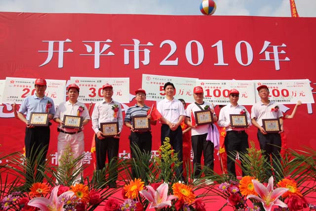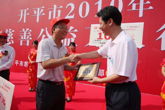 3月3日上午,2010年開平市慈善公益萬人行活動起步儀式在城市北廣場舉行。為支持慈善事業,我集團公司在慈善萬人行活動中向開平市慈善會捐贈了一百萬元,被表彰為第一批慈善事業突出貢獻的先進單位。